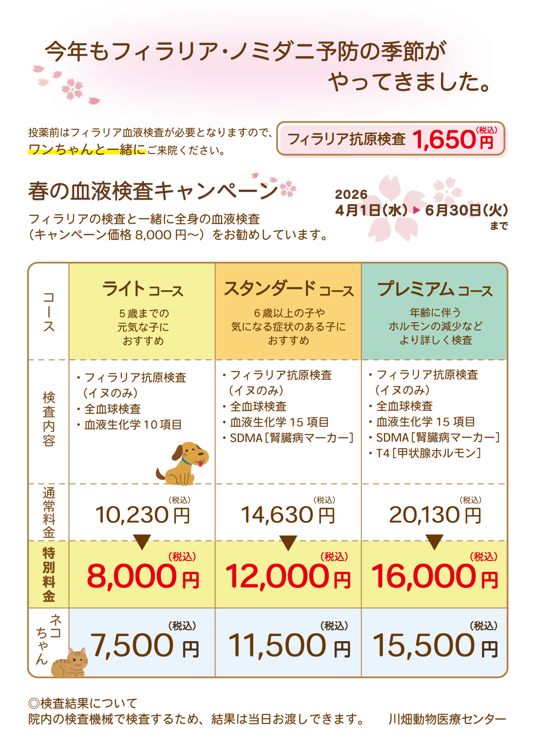 また春のキャンペーンとして健康診断血液検査も実施しております